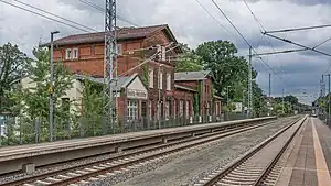 Beelitz-Heilstätten station is a railway station in the district of Beelitz-Heilstätten which belongs to the town of Beelitz located in the district of Potsdam-Mittelmark, Brandenburg, Germany.