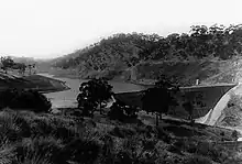 The Beetaloo Reservoir no longer supplies drinking water and is kept as a reserve for a major outage on the Morgan-Whyalla pipeline and as a recreation and fishing reserve.[2] It was built between 1886 and 1890 as a source for water to supply Yorke Peninsula. It has a capacity of 3.18 gigalitres (112,000,000 cu ft).[2] When it was built, Beetaloo Dam was considered the largest concrete dam in the southern hemisphere. It is now the smallest of SA Water's 16 reservoirs in South Australia.[3] At the time of its construction, Yorke Peninsula was a developing agricultural base, as well as copper mining and smelting industry in the Copper Triangle area around Kadina, Wallaroo and Moonta.
