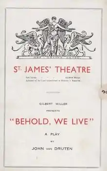 Behold, We Live is a 1932 play by the British writer John Van Druten. It had an original West End run of 158 performances at St James's Theatre in London between 16 August and 31 December 1932. It was produced by Gilbert Miller. The cast included Gerald du Maurier, Gertrude Lawrence, May Whitty, Ronald Ward and Everley Gregg.[1]