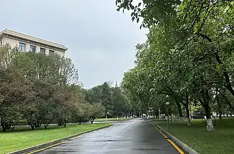 The campus of CUGB is located on the Xueyuan Road (literally: college road), a hub for higher education institutions in Haidian District of Beijing, housing a total of eight universities. The campus covers an area of approximately 130 acres, with the main road being a 2-kilometer-long tree-lined boulevard. On the north side of the boulevard, there are instructional and office buildings, the library, and the residential halls. On the south side of this boulevard, there is a cluster of sports facilities, including two standard-sized football fields, a rock climbing wall, nine basketball courts, and several badminton and tennis courts. Near the eastern gate of the university, there is the Geology Museum of CUGB. Additionally, there is an international conference center within the campus. [3]