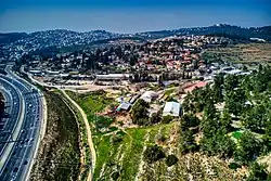 Beit Nekofa (Hebrew: בֵּית נְקוֹפָה) is a moshav in the Jerusalem District of Israel. Located in the Jerusalem Corridor, about 10 km west of central Jerusalem, next to Highway 1 and the Hemed Interchange, between Mevaseret Zion and Kiryat Ye'arim, south of Kiryat Anavim,[2] it falls under the jurisdiction of Mateh Yehuda Regional Council. In 2021 it had a population of 758.[1]