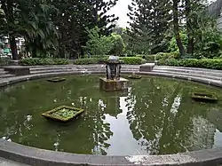 The park was created in 1913 during the Japanese rule of Taiwan, making it the third oldest park in Taipei and the first hot spring park on the island.[1] It was constructed to welcome the visit of Prince Hirohito to Taiwan. The construction included the overhaul works of the area around it into the park. Soon later, a water fountain was constructed at the center of the park. Years later, the downspouts were removed from the park but was then restored in 2013 by the Taipei City Government.[2]