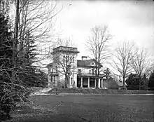 Country estates were of considerable interest to Hubbard. He consulted Andrew Jackson Downing's works on the subject and became enamored with the author's philosophy of country living in a romantic villa surrounded by semi-natural parks and gardens.[4][5]
