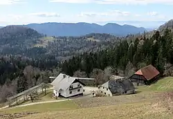 Because of the difficult agricultural conditions in the village, livestock breeding (cattle and especially sheep) dominated in the past. During the Second World War, the Partisans operated a courier station in the village to maintain connections between Upper Carniola and Styria. There was an engagement between the Partisans' Kamnik Company and German forces at the Osredkar farm in May 1942, and a Partisan hospital operated above the farm from March to October 1944. Water mains were installed in the village in 1968.[3]