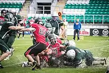 The Trojans opposition in the Shamrock Bowl would be Trinity College Dublin the only team to have beaten them in the previous three years. The Trojans were classed as underdogs for the first time since 2012 due to Trinity's victory over the champions earlier in the season. Again it was a day for the Trojan defence to prove themselves to be the most dominant unit in Irish American Football as both offences failed to cope with the intense rain that forced a cessation of the game for thirty minutes during the first half. In keeping with the defensive battle that was being waged it was Trojan linebacker Connor Whitla who scored the only touchdown of the game picking off Dan Finnamore and running it in from 20 yards. The Trojans had completed the "Threepeat" and could now take their place at the top table of Irish American Football.