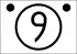 | Origin sign: marks the beginning of a speed restricted zone. The number is the same as the announcement sign above. Sometimes the number is not present and a plain black circle is used instead. | ||