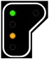 ![]() | Green-yellow vertical: allows the passage at full speed and warns of a short section: the distance between the signal following and that follows is shorter than the distance normally required to perform the action required . | ![]() |