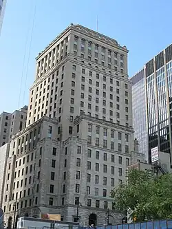 The Bell Telephone Building (French: Édifice Bell) is a neoclassical office building in Montreal, Quebec, Canada. It was constructed with a steel frame between 1927 and 1929. It has 22 floors and is 96 m (315 ft) tall. It once contained the head office for the Bell Telephone Company.