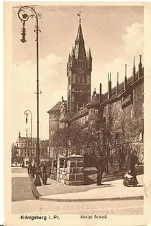 The Bell tower in Königsberg (built by the architect Stüler) was a bell tower of the Schlosskirche (Königsberg). After being largely destroyed in World War II by Allied Forces and then annexed by the Soviet Union thereafter, the city was renamed Kaliningrad, and few traces of the former Königsberg remain today. As part of Königsberg Castle, the bell tower of the Schlosskirche (Königsberg) was devastated by the 1944 Bombing of Königsberg and 1945 Battle of Königsberg during World War II. The remnants were demolished in 1968, by which time the city was known as Kaliningrad.