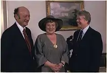 In early 1977, President Jimmy Carter chose a new National Commission on the Observance of International Women's Year and appointed Abzug to head it. Numerous events were held over the next two years, culminating in the 1977 National Women's Conference in November.[32] She would continue this work as one of the two co-chairpersons for the National Advisory Committee for Women until her dismissal in January 1979, which would create a flash point of tension between the Carter administration and feminist organizations in the United States.[33]
