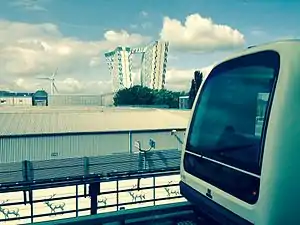 Bella Center station is a rapid transit station on the Copenhagen Metro. It is served by the M1 line. The station is elevated from ground level and opened on 19 October 2002. It is located in fare zone 3 and named after the Bella Center, a congress center located to the west of this station.