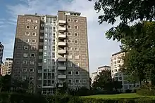 Bellahøj is an area situated 5 kilometres to the northwest of central Copenhagen, Denmark. It features the Bellahøj Houses, a functionalist housing project, as well as parkland with an open-air theatre. The 37 metre high hill situated in Bellahøj Park is the highest point in Copenhagen.[1] The area offers an extensive view over the skyline of Copenhagen.