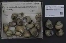 - ↑ Kear B. P., Hamilton-Bruce R. J., Smith B. J. & Gowlett-Holmes K. L. (2003). "Reassessment of Australia's oldest freshwater snail, Viviparus (?) albascopularis Etheridge, 1902 (Mollusca : Gastropoda : Viviparidae), from the Lower Cretaceous (Aptian, Wallumbilla Formation) of White Cliffs, New South Wales". Molluscan Research 23(2): 149-158. doi:10.1071/MR03003, PDF.