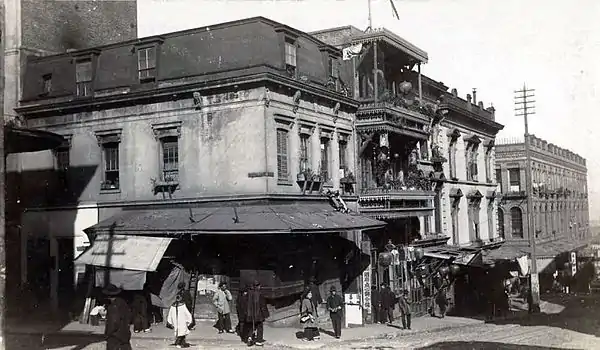 Belle Cora held a competing party (which had more guests) the same night as the wife of U.S. Marshal William H. Richardson, which is said to have begun a rivalry between the women.[11] The feud was further provoked one evening at the American Theatre.[12] Richardson's wife complained to the manager that the Coras were seated in the same balcony as she was, as she felt that area should be reserved for more respectable guests.[1][13][14][15][12] However, the manager refused to remove the couple, saying that they were regular customers of the first balcony.[12] William left swearing vengeance upon Charles.[12]