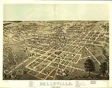 Belleville was incorporated as a village in 1819, and became a city in 1850. It is said that Blair originally named the city Bellville in honor of Tennessee politician John Bell. In 1863, the name was officially changed to Belleville to distance the city from the now-disgraced Confederate.[4] Major immigration in the mid-19th century to this area occurred following revolutions in Germany, and most of the European-American population is of German ancestry.