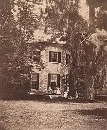 Bellevue remained in the Wharton family for more than 60 years. In 1834 Charles Wharton gave the estate to his son William (1790–1856), who resided there in the summer with his wife Deborah Fisher Wharton for two decades raising their family. It was a working farm of 106 acres (0.43 km2), situated in rolling hills, with house, barn, sheds, vegetable gardens, orchards, fields, and farm animals. The manor house overlooked a small valley and brook that flowed into the Schuylkill River. Large willows, sycamores, and oaks dominated the house and landscape. Servants, mostly Irish, assisted with housekeeping and hired hands worked the fields and maintained the farm animals. The estate was surrounded by woods and estates of other wealthy Philadelphians.