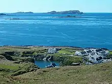 Belnahua is one of the Slate Islands, in the Firth of Lorn in Scotland, known for its deserted slate quarries. The bedrock that underpins its human history is part of the Scarba Conglomerate Formation and its value has been on record since the 16th century.[5][6] Likely uninhabited before commercial quarrying commenced,[7] under the control of the Stevenson family during the 19th century[8] the population expanded to over 150[9] before the island was abandoned again in 1914.[10]