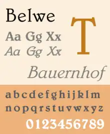 A digital version, also simply called Belwe, was released in 1989 by ITC. Another version, Belwe EF, is made by Elsner+Flake.