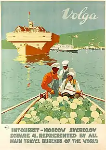 Frequent destinations for belyanas were Saratov, Tsaritsyn (today's Volgograd), and Astrakhan, where the timber and hull were dismantled for firewood or went to sawmills for final processing.[15][17] The boats' cabins were sold as ready-made houses.[11] Belyanas did not go further than Astrakhan on the Caspian Sea. Only the smallest belyanas, loaded with fish in Astrakhan, went back, pulled upstream by burlaks.[2] Maintaining a vessel for more than one season was unprofitable. In particularly active years, up to 60 to 150 belyanas sailed the Volga.[15][1] The value of a belyana could be between 100,000[15] and 150,000 rubles (c. 1910).[17]