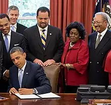 Jealous broadened the NAACP's alliances in 2011 at the National Press Club when a conservative coalition of criminal justice reform advocates endorsed an NAACP report authored by Jealous. In the report, Jealous highlights the adverse effects of over-incarceration of youth on society and the case for increasing public funding for education.[31] In Texas later that year, the NAACP worked with leaders of the Tea Party to pass a dozen criminal justice reform measures, leading to the first scheduled prison closure in state history.[32] Similarly, in 2013, the NAACP worked closely with Virginia Governor Bob McDonnell to pass bipartisan voting rights reform that gave former offenders the chance to vote after they served the terms of their sentence.[33]