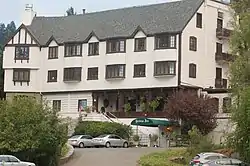 It was built of Douglas fir in the Tudor Revival style.[3]