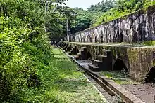 According to the Babad Banyumas, Sunan of Surakarta Pakubuwono IV first built a fortress in the Cilacap area in the early 19th century; the Central Javan branch of the Center for the Preservation of Cultural Properties suggests that Benteng Pendem may have been built over this fort.[1] Kustbatterij op de Landtong te Tjilatjap (Coastal Battery at the Peninsula of Cilacap), the fort which is now known as Benteng Pendem, began construction in 1861.[2][4] At the time, the port of Cilacap was an important one for the transportation of goods from Yogyakarta and Purworejo, and thus defended well for its strategic importance; another fortification from this period can be found in Karang Bolong, Nusa Kembangan.[1] The fortress began operations in 1879, and held numerous prisoners – both civilian and military – while occupied by the Dutch.[5]