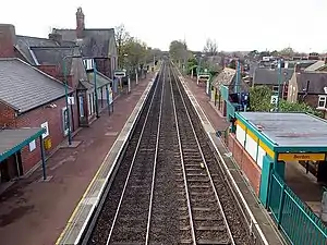 Step-free access is available at all stations across the Tyne and Wear Metro network, with ramped access to platforms. Two lifts, which were installed in 2011, provide step-free access over the footbridge between platforms.[3][4] The station is equipped with ticket machines, waiting shelter, seating, next train information displays, timetable posters, and an emergency help point on both platforms. Ticket machines are able to accept payment with credit and debit card (including contactless payment), notes and coins.[5][6] The station is also fitted with smartcard validators, which feature at all stations across the network.[7][8]