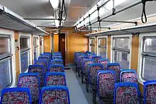 The lines operate electric trains of the machine-building plant Rīgas Vagonbūves Rūpnīca ER31 and ER35, with three-door cars and 1435 mm gauge bogies. Since 2010, modern trains have been purchased to replace worn-out Riga trains.