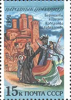 ![]() A berikaoba scene on a Soviet stamp from 1991 | |