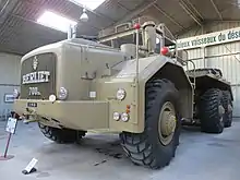 The first two trucks were 6x6 flatbeds with gross weights of 103 tonnes; the third was built as a 6x4 dumper truck, for the uranium mine at Bessines-sur-Gartempe; the fourth was another flatbed truck with 102 tonne gross weight, or 190 tonnes as a tractor. It was experimentally fitted with a Turbomeca gas turbine in 1962, but fuel consumption was excessive, so the conventional diesel engine was fitted again.