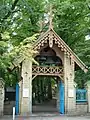 The Friedhofskirche (cemetery church) of St. Constantine and St. Helena was built in 1894 and is the oldest of the three Russian Orthodox churches in Berlin, and the only one in Germany that has its own cemetery. It is situated in an industrial area near the motorway exit Holzhauser Straße. The gateway is covered by a beautiful carved roof, under which the nine cemetery bells are housed. The cupolas are crowned with orthodox crosses, which tower above small crescent moons in memory of old religious wars.