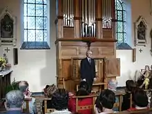 - ↑ John Henderson - A directory of composers for organ, 1996 "Foccroulle, B., b. 1953, Belgium; Bernard Foccroulle, writer and teacher, is director of the Brussels Opera. His compositions include Resonance 1976 (for pipe and electronic organ), Acousmie (for organ and synthesizer) 1980, Tiento de diversos"