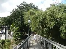 The park's southern side in Pinagkaisahan contains a picnic area and the Ponciano Bernardo monument. It is bordered by the Ramon Magsaysay (Cubao) High School which replaced the old city hall, and the Klinika Bernardo and Social Hygiene Clinic, a publicly funded HIV prevention, testing and treatment center.[11] Just across EDSA from the Pinagkaisahan park is Nepa Q-Mart, also known as Mega Q-Mart, one of the largest wholesale flea markets in Metro Manila. Also located in the vicinity is the Bernardo Park Compound, a slum area which in 2007 sheltered 100 families.[2] Many of these informal settlers work as vendors in Nepa Q-Mart. There are also informal settlements along the Meralco-Botocan power line and K-6th Street in the Kamuning side, and along Ermin Garcia and Maryland Streets in Pinagkaisahan, including some in the riverbanks and under the EDSA bridge.[2]