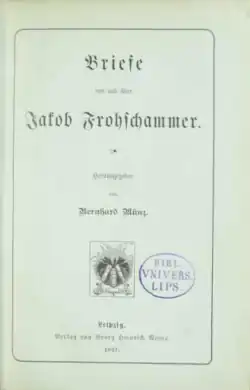 • Briefe von und über Jakob Frohschammer. Leipzig: Georg Heinrich Meyer. 1897.