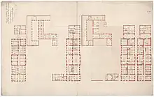 The mansion was after Bernstorff's death in 1772 passed to his nephew Andreas Peter Bernstorff. His property was home to five households at the 1787 census. Andreas Petrus Bernstorff resided in the building with his wife Augusta Lowisa (née Stolberg), their six children (aged six to 20) and the hovmester Ferdinant Kock.[3] Their staff comprised 38 people.[4][5] Jens Jørgensen, a courier at the Royal Danish Library, resided in the building with his wife Sara Hillebrand and their five-year-old son Johan Daniel Jørgensen.[6] Johan Friderick Baumgarten, an inspector at the Class Lottery, resided in the building with his wife Dorothea Friderica, their daughter Ide Hedevig, one maid and one female cook.[7]