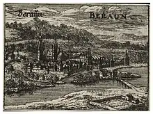 - ↑ One or more of the preceding sentences incorporates text from a publication now in the public domain: Chisholm, Hugh, ed. (1911). "Beraun". Encyclopædia Britannica. Vol. 3 (11th ed.). Cambridge University Press. p. 764.