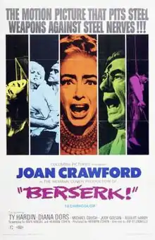 Berserk![lower-alpha 1] is a 1967 British horror-thriller film directed by Jim O'Connolly and starring Joan Crawford, Ty Hardin, Diana Dors and Judy Geeson. The screenplay was written by Herman Cohen and Aben Kandel.