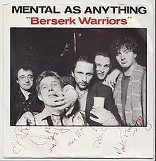 Berserk Warriors is a song by Australian band Mental As Anything, released in December 1981, through Regular Records.[2] The song was written by band member Peter O'Doherty. It is a thinly-veiled reference to the marital travails of the members of ABBA. It was released as the third and final single from the band's third album Cats & Dogs. The Song first charted on December 14, 1981, and it peaked at no. 30 on the Kent Music Report and it stayed in the charts for 16 weeks.[3] The song Berserk Warriors was used in the 2010 movie Animal Kingdom.[4]