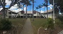 Berserker Street State School is a government primary (Preparatory to Year 6) school for boys and girls at 128–140 Berserker Street (23°21′55″S 150°31′48″E / 23.3654°S 150.5299°E).[17][18] It includes a special education program.[17] In 2015, the school had an enrolment of 490 students with 38 teachers (36 full-time equivalent).[19] In 2018, the school had an enrolment of 516 students with 39 teachers (37 full-time equivalent) and 42 non-teaching staff (28 full-time equivalent).[20] The 1917 building with the unusual design is still extant at 2021.[21]