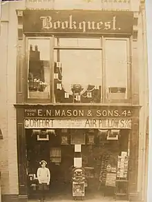 Ernest Nathan Mason was employed by Paxmans and the business was run by Bertha Mason at 1 Queen Street under her name.[5][6] After her husband died in 1914, Bertha went into partnership with her two eldest sons, Conrad and Bernard. She named their company after her husband at a time when it was commonly accepted for Victorian men to name their businesses after themselves. Bertha ran the business whilst also caring for her two younger children.[7]