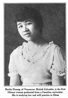 Bertha Hosang Mah (November 18, 1896 – 1959) was a Canadian student, the first Chinese woman to graduate from a Canadian university.