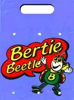 Other variants of the Bertie Beetle showbag are offered with more items and at a higher price. In 2003, the Bertie Beetle Bonanza showbag was created to celebrate the 40th anniversary of Bertie Beetle, which came with many Bertie Beetles as well as a choice of a branded cooler bag or a basketball. In 2006, there were four variants: a small red bag, a medium-sized blue bag, a large gold bag, and the '1-2-3' bag, containing those three bags and some extras. In 2009, there were a number of bags, including Bertie Beetle Blue, Gold, and Platinum bags along with the Bertie Beetle Bonanza bag and a Bertie Beetle Triple Deal bag, which like the 1-2-3 bag contained the three coloured Bertie Beetle bags. In 2013, a 50th anniversary special edition of the Bertie Beetle showbag was made available, consisting of 50 Bertie Beetle chocolates and a mask. In 2019, the Bertie Beetle Retro Showbag was introduced to the range; it included a retro paper bag, Bertie Beetle chocolate bars and a choice of a bucket hat, socks, a collector's tin or 2 enamel camping mugs with retro graphics. In 2021 the most expensive Bertie Beetle showbag variant sold for $18.[4] The Bertie Beetle showbag brand is currently managed by showbag company Chicane Marketing, which acts as an agent for Nestlé and produces other branded showbags for the multinational company.[2][4]