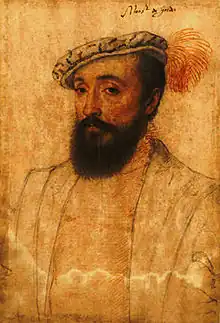 He was among those notables who attended the king at Moulins in 1566 when the king oversaw the coerced reconciliation of the House of Guise and House of Montmorency alongside publishing a decree of judicial reform.[19] The long peace was not to last however, and Protestant uprisings would consume Dauphiné, many of the towns that Gordes had overseen the subduing of rose up in revolt again including Valence.[20] Gordes went on a tour of the province, trying to talk towns down from their uprising, travelling across the Haut-Dauphiné, succeeding in bringing his authority back to many smaller settlements there. He was able to charm the leading Protestant military leaders of the region, Montbrun and Lesdiguières.[21]
