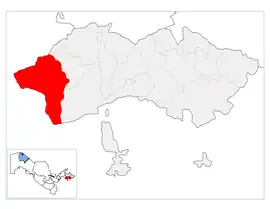 Beshariq is a district of Fergana Region in Uzbekistan. The capital lies at the city Beshariq.[1] It has an area of 770 km2 (300 sq mi)[2] and it had 234,600 inhabitants in 2022.[3] The district consists of one city (Beshariq), 10 urban-type settlements (Nafosat, Zarqaynar, Kapayangi, Qumqishloq, Oqtovuq, Rapqon, Tovul, Uzun, Chimboy, Manguobod) and 9 rural communities.[1]