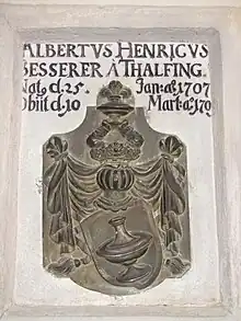 The family line has been known since the 13th century and was ennobled to Freiherren[2] in 1817 and 1838. It seems, that the Besserer von Thalfingens had the same roots as the sirs Von Besser, which had its seeds also in the surroundings of Ulm. One line of the Von Bessers owned the estate of Thalfingen, which is a part of Elchingen since May 1, 1978, and the descendants of another line were later located in Saxony. The writing of the name of the members of the Thalfingen line changed from Besser to Besserer.[3]