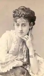 Bessie was in a company organized by Richard D'Oyly Carte that started a tour of England and Ireland on 21 June 1875. Carte's company performed La Périchole, La fille de Madame Angot, and Trial by Jury, by Gilbert and Sullivan. After ten weeks in England, the company opened at the Gaiety Theatre, Dublin on 5 September 1875.[16] In October 1875 Bessie performed as an opera bouffe soprano, playing "Cesarine" in Charles Lecocq's Fleur-de-Thé.[11] Emily Soldene recalled in her 1898 memoirs that D'Oyly Carte was producing this new comic opera at the Criterion Theatre.[17] The actress playing "Caesarine" had to be replaced at the last minute, and Carte wired the Gaiety Theatre manager Michael Gunn to send Miss Sudlow from Dublin. She heard the music for the first time when she was on stage, and had to improvise where she had forgotten the words, but the reviewers were enthusiastic.[18]
