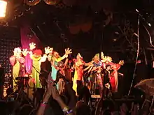 The Scissor Sisters opened their set dressed in clown costumes,[2] singer Ana Matronic joking "Sorry guys, we didn't get the memo."[3]