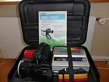 After the introduction of VHS and Betamax formats in the mid-1970s, videocassette recorders (VCR) started gaining mass market traction—by 1982, 10% of UK households owned a VCR.[4] The first two-piece camera/VCR systems emerged in around 1980. These units included a portable VCR, which the user would carry on a shoulder strap, and a separate camera, which was connected to the VCR by a special cable. These systems were cumbersome and heavy. For example, the portable Sony SL-3000 VCR from 1980 weighed around 9 kg without the battery.[5] The accompanying camera (e.g. HVC-2000P) would weigh around 3 kg[6] Thus, the complete setup could easily weigh in excess of 13 kg.