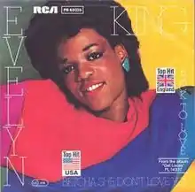 "Betcha She Don't Love You" is a song by American singer Evelyn King, released by RCA Records as the second single from her fifth album Get Loose (1982), the follow-up to "Love Come Down". The song was written and co-produced by American musician Kashif[2] and talks about a boy going out with another girl who will break his heart. It reached number two on the US Billboard Black Singles chart and number 49 on the Hot 100 chart. A 12" extended mix of this song was included on King's Greatest Hits album.