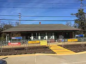 Bethayres station is a SEPTA Regional Rail station in Bethayres, Pennsylvania. It is located at Station Avenue and Old Welsh Road and serves the West Trenton Line to Ewing, New Jersey. Bethayres station was originally built in 1876 by the Reading Railroad.[3] The station has off-street parking and a ticket office. There is also a handicapped-accessible platform. In FY 2013, Bethyares station had a weekday average of 578 boardings and 553 alightings.[4] Bethayres is the last boarding stop for AM peak service express trains to Philadelphia and the first discharge stop for PM peak service express trains from Philadelphia.